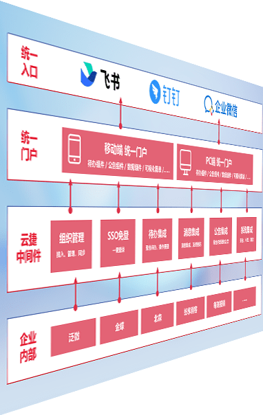 对协作平台提供支持服务,,支持企业应用与协作平台对接,,,,包含组织同步、、消息集成、、待办集成等。。支持目前主流的协作平台:钉钉、、、、企微和飞书。。。